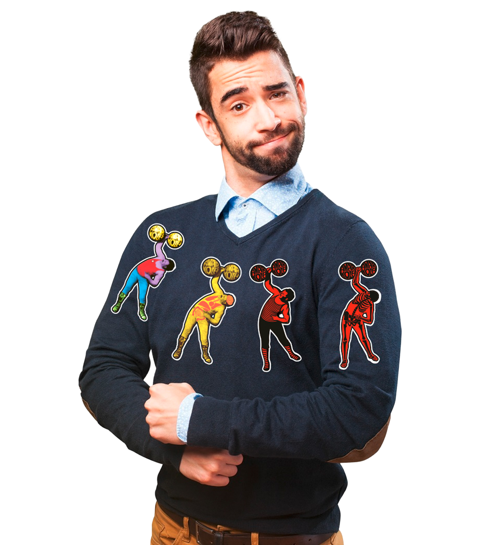 Vier kontur­geschnit­tene Aufkleber, 140 mm hoch und 66 mm breit. Sie enthal­ten einen matten Laminat­schutz.